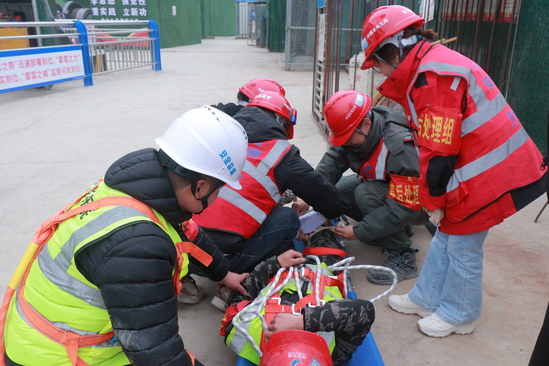 演練模擬場景設定為作業(yè)人員正在進行打鉆施工,豎井上部突然出現(xiàn)不均勻掉塊、局部塌方?,F(xiàn)場班組長立即組織作業(yè)人員停止作業(yè)、撤離危險區(qū)域,現(xiàn)場第一時間啟動警報,并向上級報告險情。項目部應急指揮部接報后立即啟動二級響應,演練過程中,事故調(diào)查組、善后處理組、后勤保障組、專家技術(shù)組、現(xiàn)場搶險組等應急小組按預案迅速到位,各環(huán)節(jié)銜接緊密,指令傳遞清晰,現(xiàn)場處置有序。演練結(jié)束后,現(xiàn)場指揮部進行了全面總結(jié)評估。本次演練充分檢驗了應急預案的可行性、應急隊伍的響應速度和各部門的協(xié)同能力,達到了強化安全意識、完善應急機制、提升實戰(zhàn)技能的預期目標。要求項目部進一步細化極端工況下的應急處置流程,筑牢安全生產(chǎn)防線。